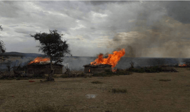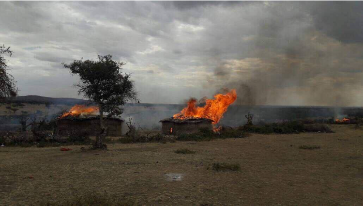 The Tanzanian government set fire to Maasai homes in Loliondo, as a part of its militarized eviction plans to clear the area for the Otterlo Business Corporation, a trophy hunting firm. Credit: MISA.