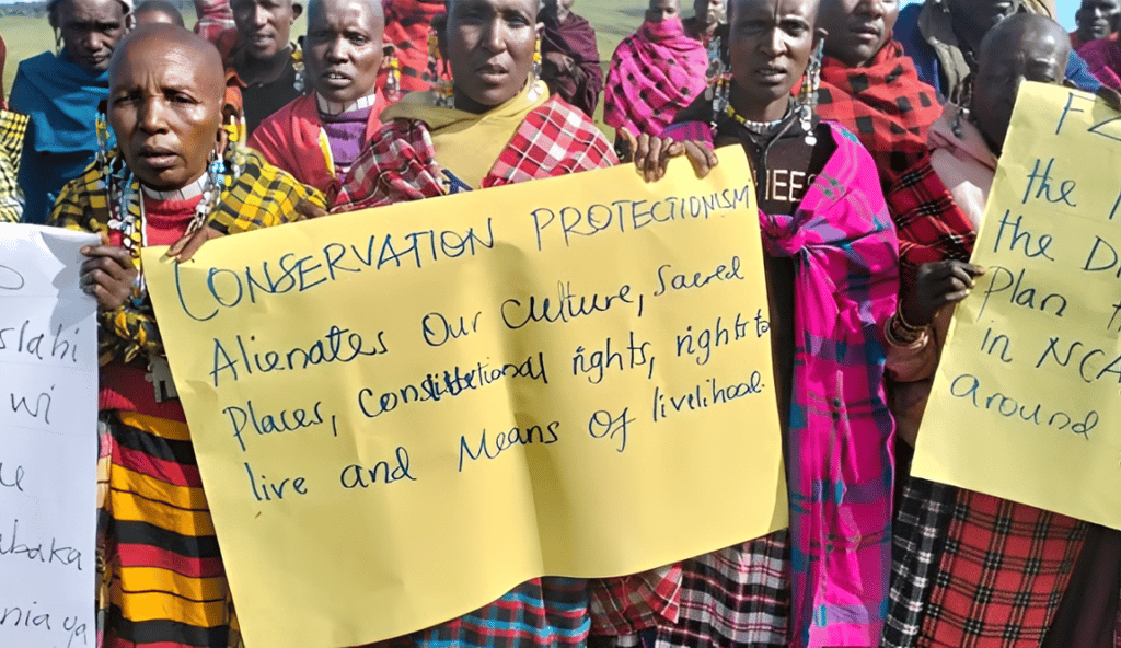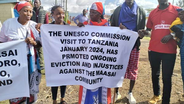 Maasai activists denounced organized protests against the theft of their lands in the name of conservation on World Heritage Day (April 18). Credit: MISA.